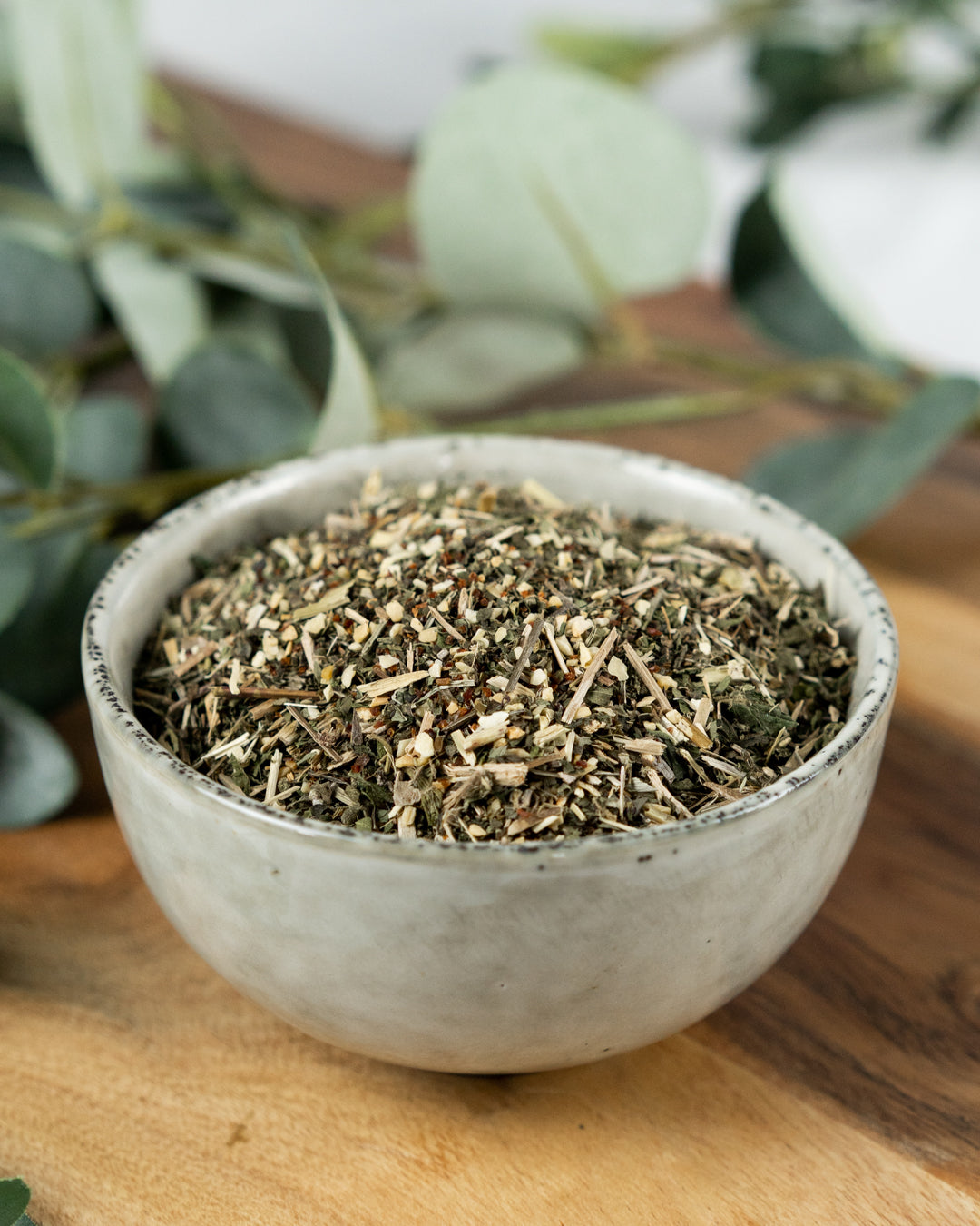 Contains; Clivers, Meadowsweet, Rosehips, Garlic, Kelp, Nettles, Mint., Siberian Ginseng (Caution: Some horses may be allergic to nettles so test a small quantity first).