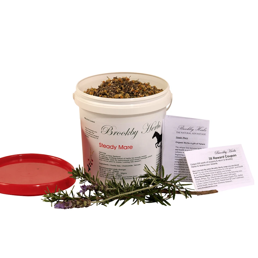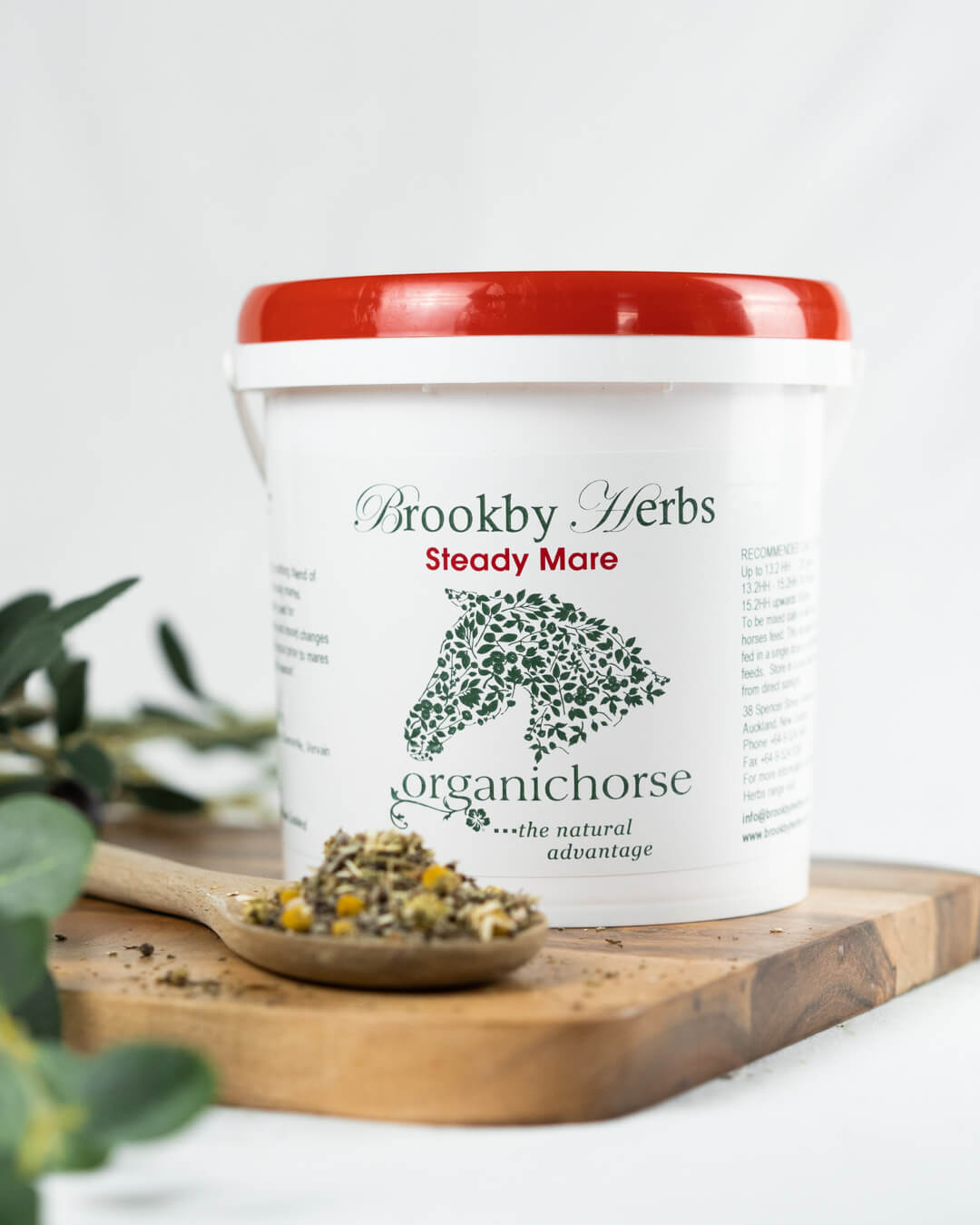 "My cheeky standardbred gelding thinks he's "the man", especially in spring. He can get a bit too bossy and protective. I tried "Steady Mare" last year after a friend suggested chaste berries as a natural option to help calm things down. I hunted the internet and came across Brookby Herbs. They have an excellent product and deliver promptly.